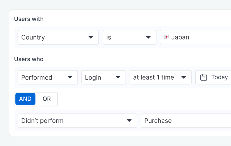 Design behavior-based, multi-step journeys and trigger real-time in-app messages, modals, or surveys based on user actions and attributes